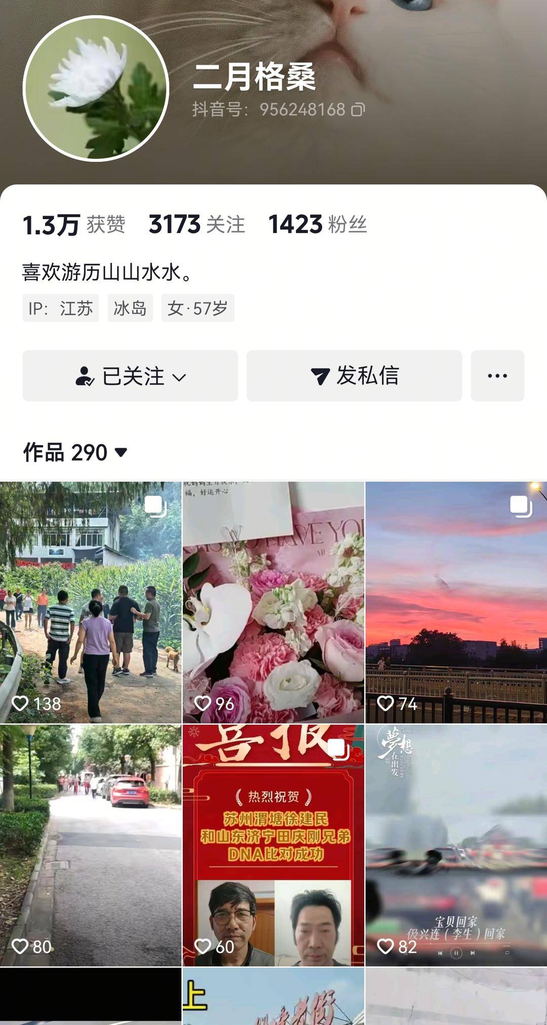 “二月格桑”的短视频账号